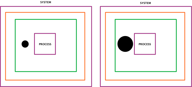 Based on the description above of the premise. Let us say that we identify a small subject from which we take perspective. If the subject should be perceived and conceived as small, something needs to be big. When defining something to be small, we have giving meaning to a relation between two contrasting elements, which gives us a condition of two contrasting systems that puts propellors on a process.