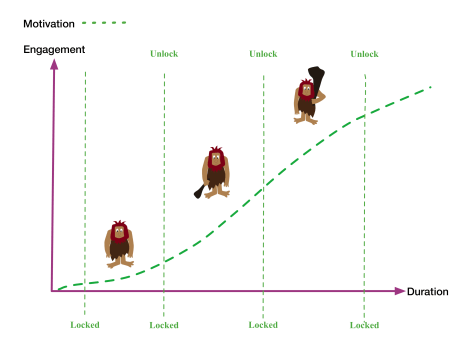 The space of activities wherein the process of learning is gradually advancing towards new states is built in regard to the goal. How you sequence the space of activities to meet the goal-states of going from weak to strong can be depicted with the help of the causal contrasts of “lock and unlock”. Meaning, each sequence (level) withholds contents that gradually unlock along the duration axis when a goal-state of getting stronger is completed.