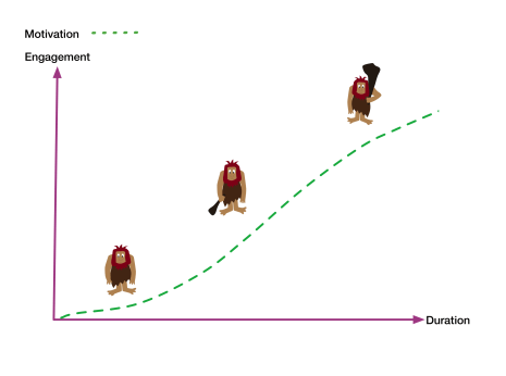 1. The progression structure (also called scripted) prompts the drive-state of curiosity by directing the receiver to pick up calls from contrasts in the building of experiences and expectations. Through the pacing of the tempo by changing between fast/slow, and the intensity of the activity of being easy/hard, motivation is built in regard to the player’s learning and actions.