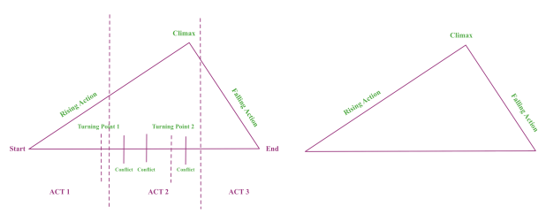 To show how the narrative systems of plot and style coexist when triggering the engaging forces by how the receiver interprets the causal, spatial, and temporal links, I turned the conflicts and turning points into cause and effect.